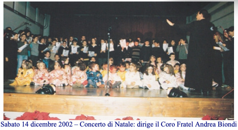 Il 13 dicembre 2003 si tiene il Concerto di Natale con il Coro della Schola Cantorum, sempre diretto da fr. Andrea Biondi. Subito dopo la Festa di Carnevale le famiglie partono per la Settimana Bianca a Sansicario con la solita, buona, partecipazione. L’organizzazione di fr. Lorenzo è ormai divenuta proverbiale e si fa a gara per partecipare nei posti da lui individuati.