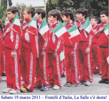 L’anno scolastico 2010-2011 inizia con 249 allievi alla scuola primaria e 136 alla secondaria per un totale di 385 iscritti. Le alunne sono 171 e gli alunni sono 214. Sia alla scuola secondaria che alla scuola primaria permane la doppia sezione. Questo è un anno particolare: ricorre infatti il 150° Anniversario dell’Unità d’Italia (1861-2011). Ma sarà anche un anno molto triste per alcuni lutti che colpiranno la scuola. Si inizia il 7 settembre 2010 con il saluto nel cortile dell’Istituto della maestra Paola Tamponi che lascia la scuola per andare in pensione. Sabato 9 ottobre si ravviva la Festa dell’Albero con la messa a dimora della pianta da parte delle classi prime con la benedizione di padre Nino Bucca degli Oblati di Maria.