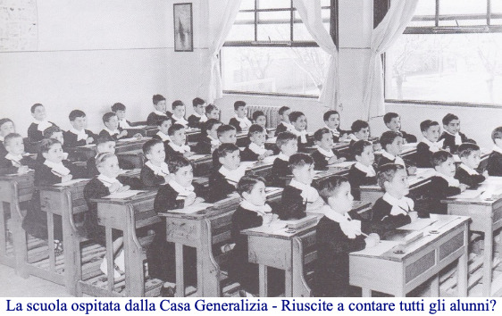Una bella esposizione di lavori in onore della Madonna viene inaugurata in occasione della chiusura dell’Anno Mariano. Gli alunni chierichetti prestano sempre servizio all’altare nelle varie cerimonie nella Cappella grande della Casa Generalizia. Terminato l’anno scolastico con i soliti brillanti risultati degli alunni, soprattutto in matematica, i Fratelli si recano a Paderno del Grappa per seguire corsi di studio e aggiornamento agli Istituti Filippin. Elemento principe del grembiule dei bambini è il fiocco bianco, la cui ampiezza e lunghezza seleziona inesorabilmente le classi sociali, mentre il cestino rigido per la merenda così come la cartella è standard e non gode di un’altrettanta varietà socio-economica. La scuola è ancora molto punitiva; i Fratelli si distinguono invece per il loro metodo simultaneo e per l’attenzione alla centralità dell’alunno.